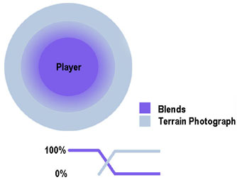 Geomipmapping Directly underneath the player the Adanced terrain allows an "unlimited" number of texture blends per chunk. There are of course performance implications. As you move away from the player these blends are slowly replaced by a simpler overhead projection photograph of the blends. During this transition both the terrain blends and terrain photographs are drawn.