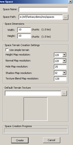 WorldEditor's New Space dialog box