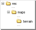 Terrain MapsTerrain maps are placed in their own directory (res/maps/terrain) in order to avoid confusion with other texture maps, and to aid in world building. The World Editor will only display bitmaps that are placed in this directory. If you need to store your terrain maps in a different directory structure you will need to edit the Asset Browser.