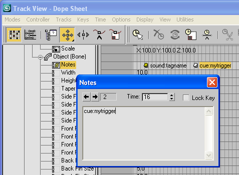Adding Note tracks to trigger events and sounds Note tracks are only supported from 3dsMax. If you use Maya please refer to the section on splitting up actions