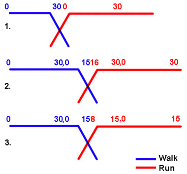 Example 3. Even when the run animation is half the number of frames as the walk animation, the BigWorld engine maintains perfect blending by finding the half way point of the run animation (15/2 = ~8) and uses this point to blend.