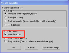 6. Ensure that each part of the model is exported separately using export selected and the model is exported with Normal mapped selected