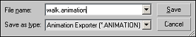2 In the dialog box that appears, select the Animation Exporter (*.ANIMATION) entry in the Save As Type drop-down list box – this will select BigWorld's proprietary 3ds Max plug-in.