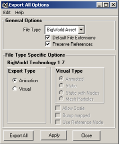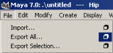 Exporting animation from Maya for use in the BigWorld engine1 Select the File→Export All menu item.