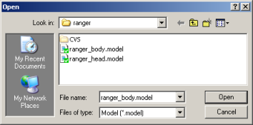Ranger model file chosen in the file browser