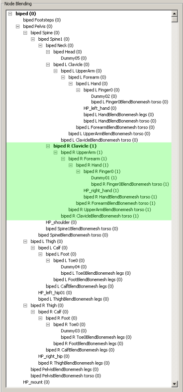 the Node Blending display. These are required by the engine for animating skinned objects and can be ignored by the artist.