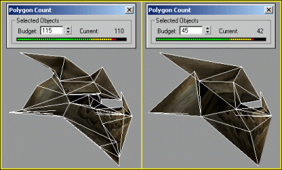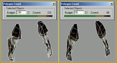 5 Enter Sub-object mode and begin reducing the mesh detail of the copy until about one-third the polygon count of the original mesh remains.