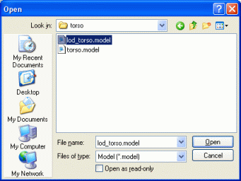 10 Save the model file for the torso, to add the LOD torso using the current distance extents.