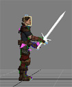 7 Hide or delete the sword and its HardPoints and export the characters animation. Create an action for the animation, the programmer will use the end of the action swap the swords attachment in code so that in successive animation the sword will be attached to the left hand.