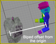 3 With the home grid turned on, you can see the biped is offset from the origin in the default pose (in this case an idle posture).