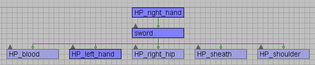 to attach the sword HP_right_hand to the player character's HP_right_hand.