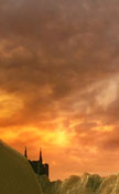 In the example below, you can see what can be achieved by making quick changes to the sky gradient texture. You can also see the effect of the alpha channel, allowing the stars on the night sky dome to show through the evening.