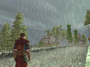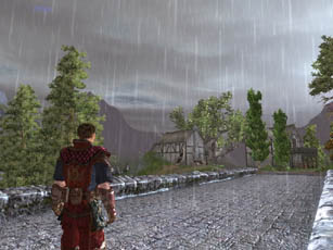 Weather in BigWorld is a combination of multiple effects including, Dynamic Sky boxes, Particle Systems, alteration to Sun and Ambient colour and alteration to Fog Colour and Fog Distance.