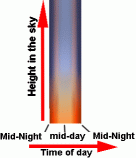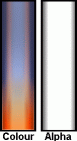The relationship of the texture colours in the gradient to the actual sky colour can be seen in the example below. The bottom of the texture represents the horizon leading upwards to the centre of the sky dome, exactly where the sun would appear around midday.