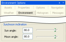 Sun and Moon angle The angle of the sun and the moon in the sky can be altered. You may want to drop the angle of the sun to simulate a more polar or winter environment, for example.
