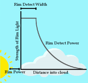 cloud_layer.fx Is designed to work with a dynamic time of day. The cloud_layer shader uses the Diffuse map alpha to determine the rims of clouds and subsequently light them. The Rim and Scattering parameters offer fine control of how this cloud rim lighting is applied.