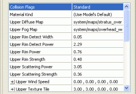 The parameters defining the cloud_layer.fx and dual_cloud_layer.fx can be altered from within Model Editors material tab.