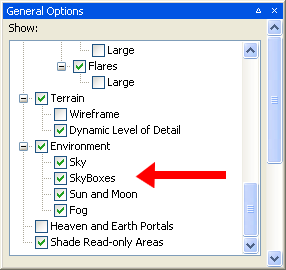 button, and specify the .visual file representing the sky box. If no skybox is used the Day Sky Box will be visible.
