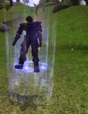 For example, the effect seen in the first two frames below (used for the player re-spawn) was made using an animated mesh, NOT a particle system. Only the last frame contains a particle system.