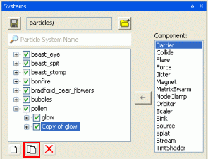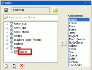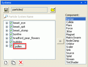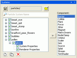 Matrix Swarm sub-panelThe Matrix Swarm component allows particles to be attached to a node or a list of nodes. This involves writing Python scripts in the game, in order to attach this sub-system correctly.