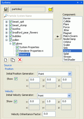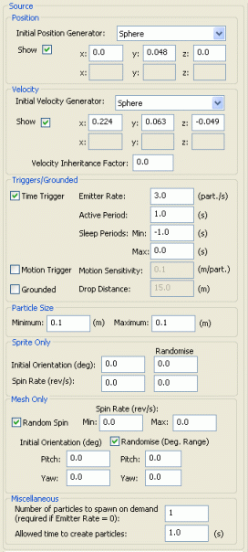 Creating a particle sourceThe Source component of a particle sub-system is responsible for generating its initial position and velocity, among other settings.