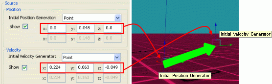 x, y, z fields and 3D gizmos for Point Initial Position Generator and Initial Velocity Generator