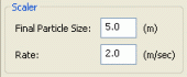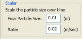 Scaler sub-panelThe Scaler component allows the user to scale the size of a particle over time.