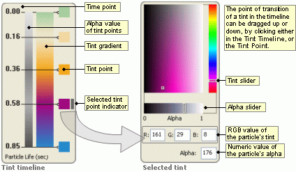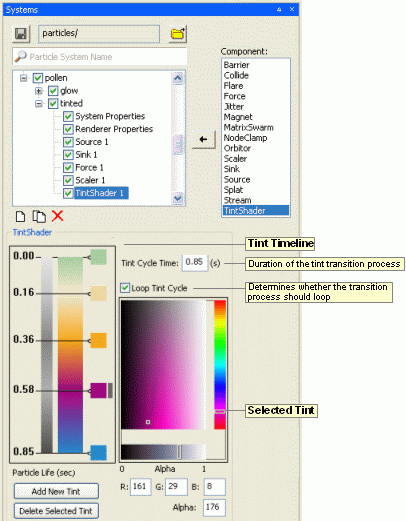 Tint Shader sub-panelThe Tint Shader component is explained in the Colouring Your Particles section of this lesson.