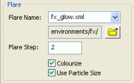 | Use Particle Size | Determines whether the particle should be sized as per its source file, instead of using the size of the chosen texture for the flare. |