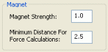 Magnet sub-panelThe Magnet component panel allows the user to specify a magnet effect to the particle's point of origin.