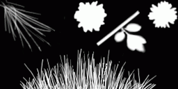 Below is an example of a flora texture and its alpha channel. As you can see, multiple objects can be displayed within the one ecotype, provided they use the same bitmap and some careful UV mapping.
