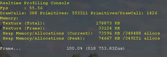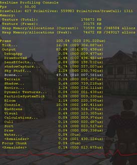 The Realtime Profiling Console can be expanded by pressing Enter to give an even further breakdown of how long the engine is spending on each part of the scene.