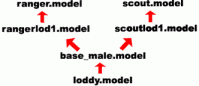 Although the animation contains detailed information about the other joints, it is unnecessary to use it, as the model is rendered so far away that these movements would never be seen. This decreases the number of transforms the vertex shader needs to perform and increases performance. Only the most common animations are assigned to |