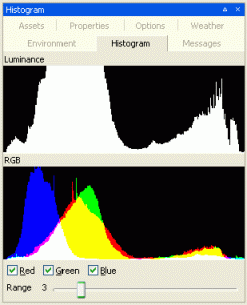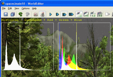 Using the complete range of textures and lightingMany games tend to adopt the dark is cool approach, resulting in a world that is overall dark in appearance, and only use half the available colour range. To tackle this issue, we have incorporated a realtime histogram into WorldEditor and into the BigWorld client, allowing you to check the range of colours and luminance used by your game assets.