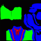 Channels of mask map used to select regions of diffuse map for colourisation. This advanced shader uses the angle of light and camera to simulate the sub-surface scattering that occurs when light enters skin. It also simulates rim/bounced lighting, by increasing the luminance of the side of the model facing away from the primary light source. The amount of the sub-surface scattering is controlled by the alpha channel of the sub surface map, and its colour is controlled by the RGB channels.