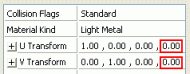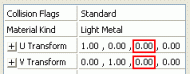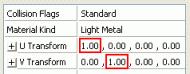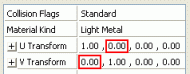 The initial UV offset of the texture is determined by the fourth value in the U Transform and the V Transform properties.