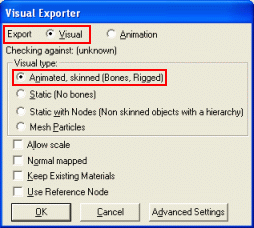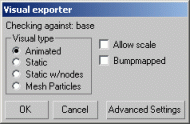 3 In the Visual Exporter dialog box, select the Visual options button and the Animated Type group box's Animated, skinned option button, then click the OK button.